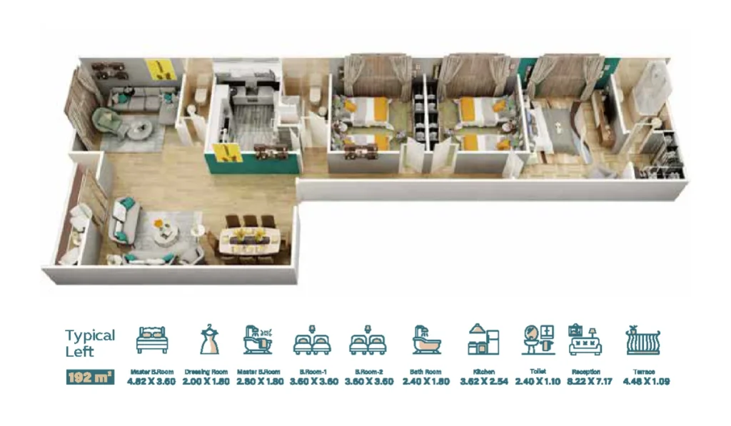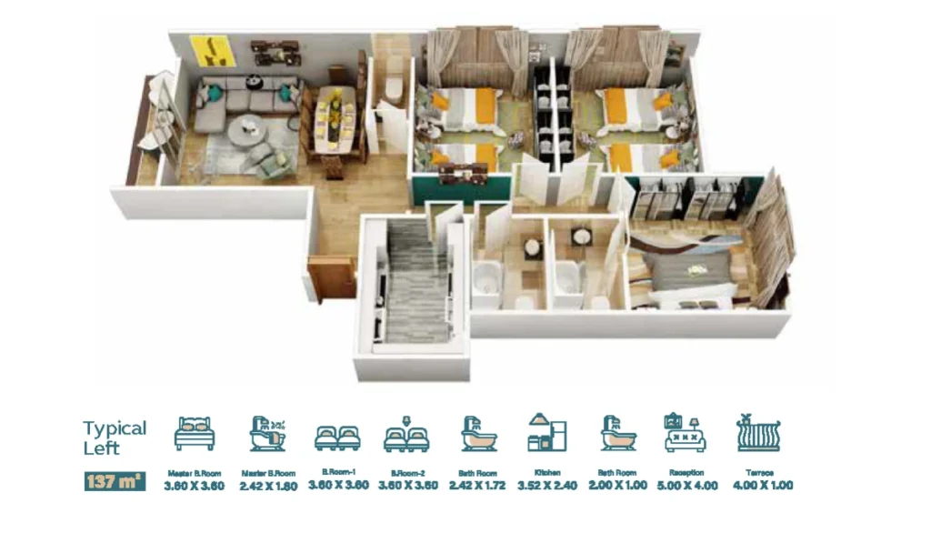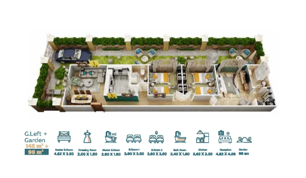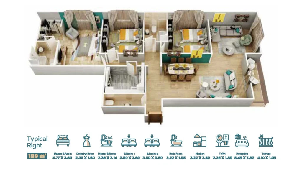 لديك كل وسائل الراحة والأمان بداية من المواد البناء المستخدمة والمطابقة للمواصفات العالمية، إلى التقسيم والتوزيع الداخلي للشقة وحتى الدهانات العازلة للحرارة والانتركم المرئي.