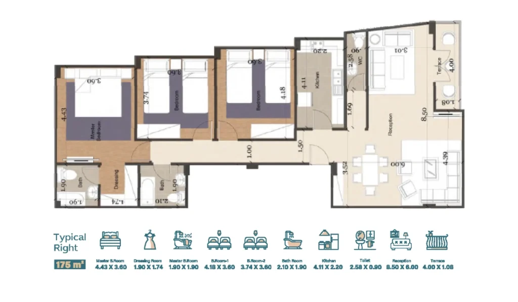 لديك كل وسائل الراحة والأمان بداية من المواد البناء المستخدمة والمطابقة للمواصفات العالمية، إلى التقسيم والتوزيع الداخلي للشقة وحتى الدهانات العازلة للحرارة والانتركم المرئي.