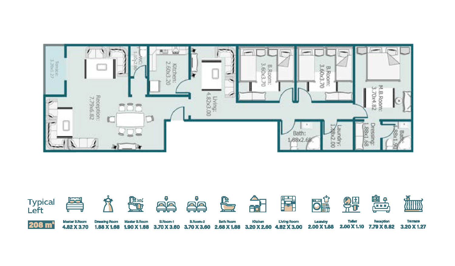 Typical Left apartment- 208 meters