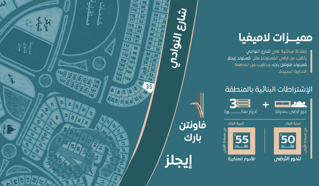 In the new Lamifia Lotus, Fifth Settlement, you live with a direct view of Al-Nawadi Street, near the most prestigious residential compounds, Eagles Compound, Hyatt Residence Compound, and Fountain Park Compound.
