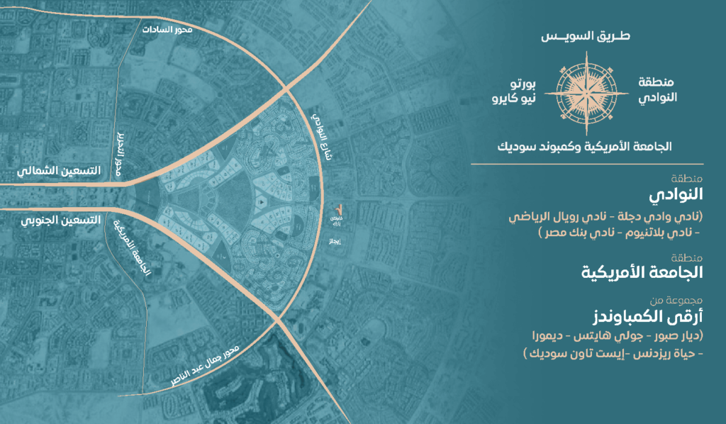 In the new Lamifia Lotus Fifth Settlement you live with a direct view of Al-Nawadi Street near the most prestigious residential compounds Eagles Compound Hyatt Residence Compound and Fountain Park Compound.