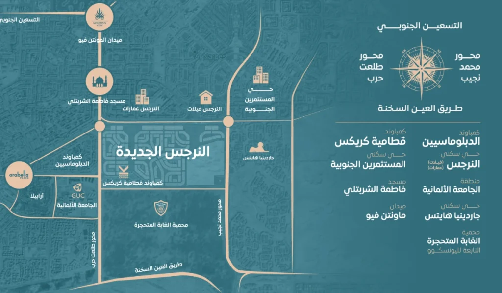 The Fifth Settlement area is distinguished by its numerous recreational facilities, making it a preferred destination for families and young people. The area features several sports clubs such as Wadi Degla Club and Platinum Club, providing a suitable environment for engaging in sports activities. Additionally, the region boasts luxurious shopping centers like Cairo Festival City Mall, which offers an exceptional shopping experience with a wide range of international stores, fine dining restaurants, and a modern cinema. The Fifth Settlement is also known for its abundant green spaces and expansive parks that enhance the quality of life, offering a tranquil and comfortable environment for outdoor activities and relaxation. With these diverse facilities, the Fifth Settlement remains an ideal choice for both living and leisure.