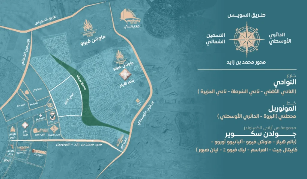 At Ruseila Beit Al Watan in Fifth Settlement, you will reside with a unique view overlooking an open 32-meter wide street. It is only 500 meters away from the View Zone area, close to the Clubs Street, directly accessible from Al Ahly Club, and just minutes away from the Suez Road.